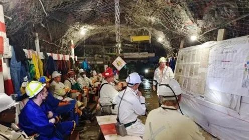王晋定董事长带队调研奥尼金矿资源 Tau矿10号井1050中段工作班前会