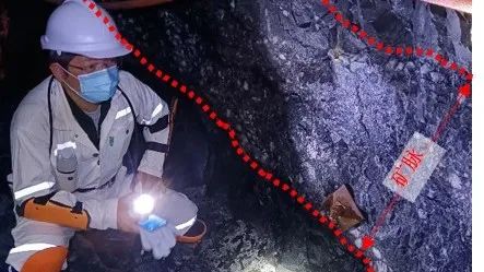 1050中段17线控制的VCR矿体 1050中段17线探获矿体的代表性矿石