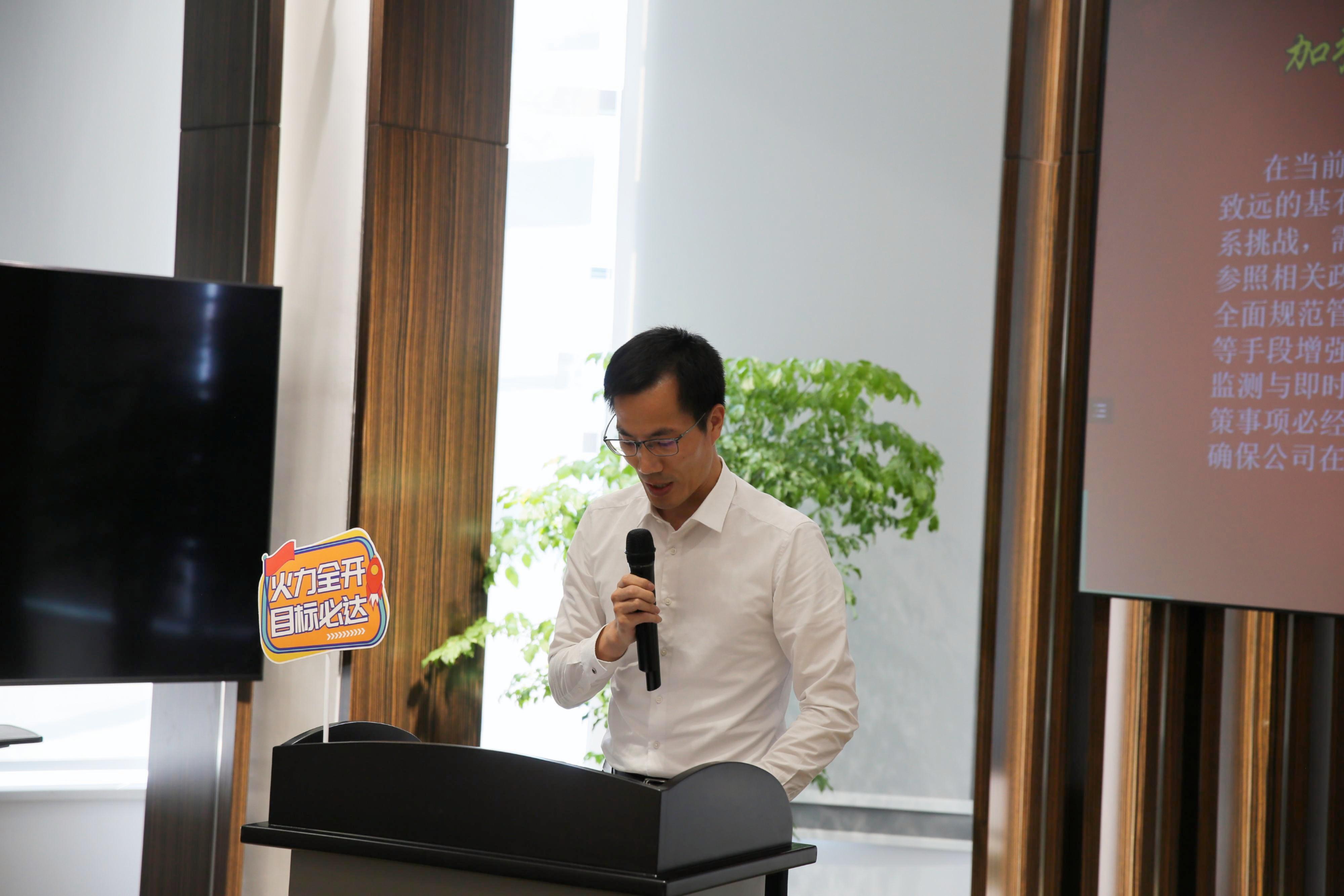 会议最后,集团执行总裁王健发表总结性发言。王总表示员工代表大会是广泛凝聚意见、共谋发展大计的重要平台,每一份提案都蕴含着代表们对于企业发展的关注之心和期待之情,是大家智慧与辛劳的结晶。王总强调,必须建立提案常态化机制,持续激发员工积极参与企业管理,发挥工作热情和创造力,要让每一位鹏欣人的声音都能被听见,每一份创意都能得到展现。王总还勉励全体鹏欣员工,面对新时代复杂多变的新形势、新挑战,要勇于担当、敢于创新,以主人翁的姿态积极投身于集团的各项工作中。在当前经济形势下,我们更应保持自省,勇于面对问题,善于在困境中寻找机遇,积极寻求解决方案。王总引用名言“天将降大任于斯人也,必先苦其心志、劳其筋骨……”鼓励大家要用实际行动践行鹏欣精神,不畏艰难,不惧挑战,认定目标,坚定执行,为集团的稳健发展贡献自己的积极力量。